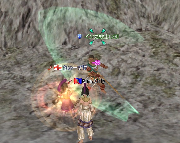 これは非常にやりたかったクエなので、速攻受けることに下は良かったのだけれど…。Lv50の陸戦があるんですよ。で、商会内にて丁度INしていた某Aさんに盾になってもらって、何とか二人で陸戦クリアです。